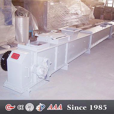 Struktur: Sikkerhedsstruktur på en-masse transportør, den kan tilføres ved mange indløb samt udtømmes ved mange udløb. Skraber og kæde bevæger sig stabilt ved at arbejde med motor og gearkasse, lav støj, så en masse transportør er meget populær. i transport af bulkmaterialer på metallurgi, minedrift, elfabrik.